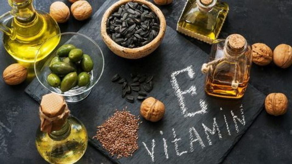 ۲) ویتامین E: ویتامین E محلول در چربی اولین خط دفاعی در برابر صدمه به بافتهای انسانی را فراهم میکند. روغنهای گیاهی بر پایه گیاه مانند آفتابگردان، گلرنگ و روغن سبوس برنج از منابع اصلی ویتامین E برای بدن ما هستند. از منابع غنی دیگر میتوان به بادام، تخمه آفتابگردان و آجیلها اشاره کرد. ماهیهای قزلآلا، اَشپَل و مارماهیها نیز از منابع مهم این ویتامین محسوب میشوند.