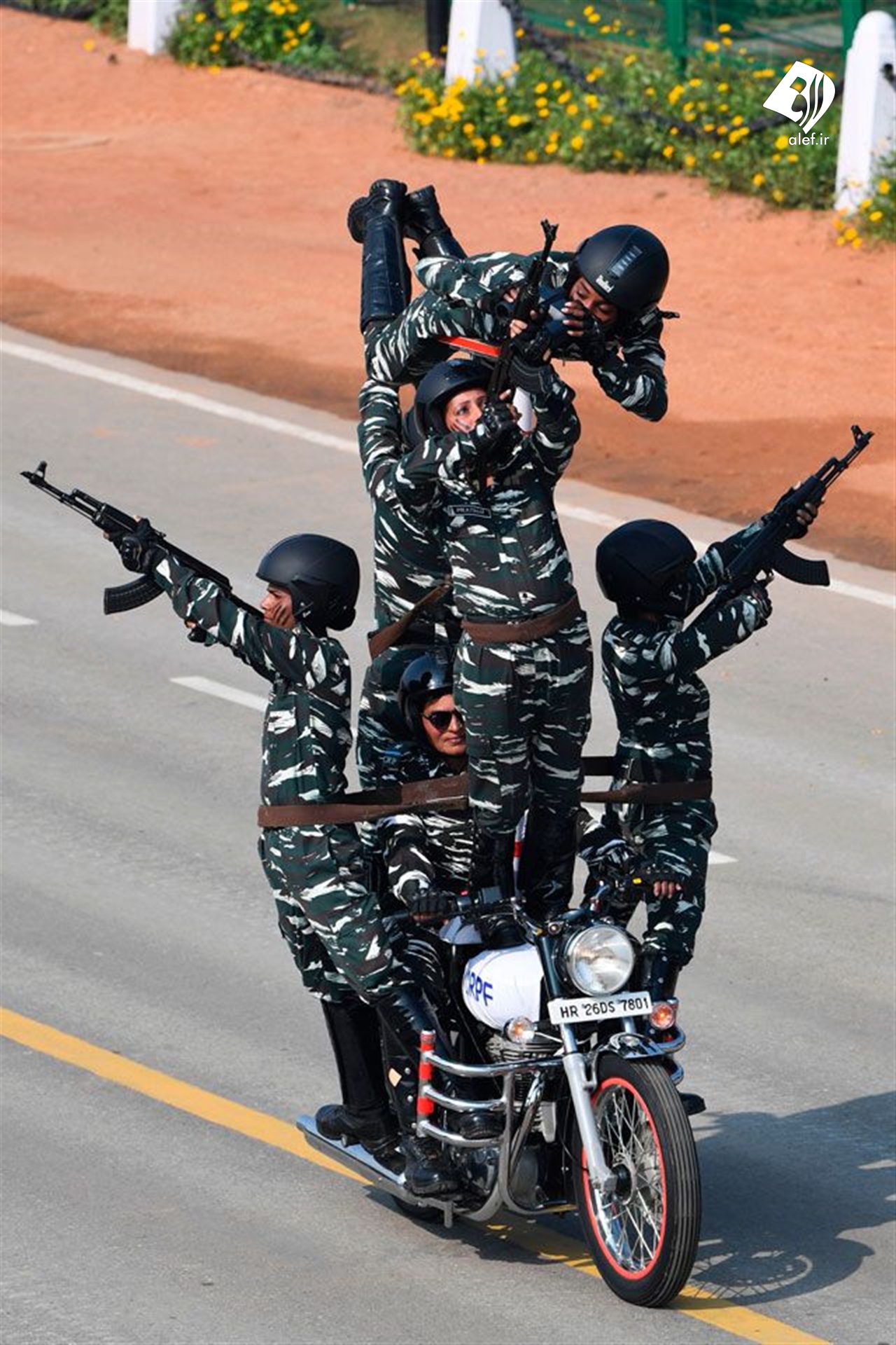 گروه عکس الف، 3981106124 ۱ نظر، ۰ در صف انتشار و ۰ تکراری یا غیرقابل انتشارهند هفتادمین سالگرد روز جمهوری را با رژه نمادین نظامی و فرهنگی جشن گرفت. در رژه امسال برای اولین بار سلاحهای ضد ماهواره، بالگرد های جدید چینوک و آپاچی به نمایش گذاشته شدهاند. رئیس جمهور برزیل به عنوان مهمان ویژه به مراسم امسال دعوت شده است. ۵۰ هزار نیروی امنیتی برای برقراری امنیت در این نمایش حاضر شدند.