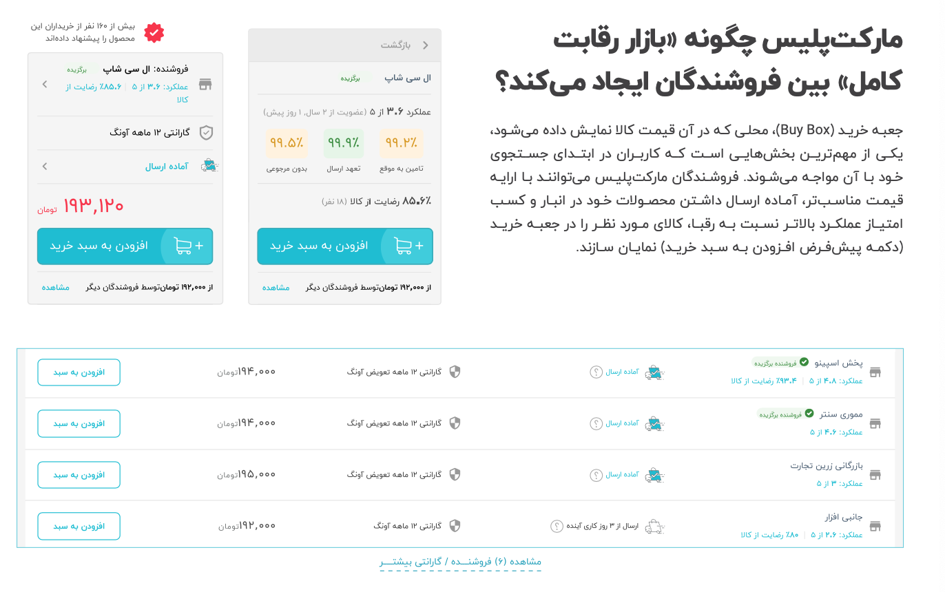 مارکت پلیس همچنین رقابت شدیدی بین فروشندگانی که میخواهند یک محصول خاص را بفروشند، به وجود آورده است. حتی در مواردی که خود دیجیکالا نیز در بین فروشندگان حضور دارد، الزاماً فروشندهی پیشفرض، خود دیجیکالا نیست و این مسئله به فاکتورهای مختلفی بستگی دارد. مدیر بازرگانی دیجیکالا درباره چگونگی و فاکتورهایی که میتوانند باعث شوند یک فروشنده، جعبه خرید پیشفرض را به دست بیاورد، میگوید: