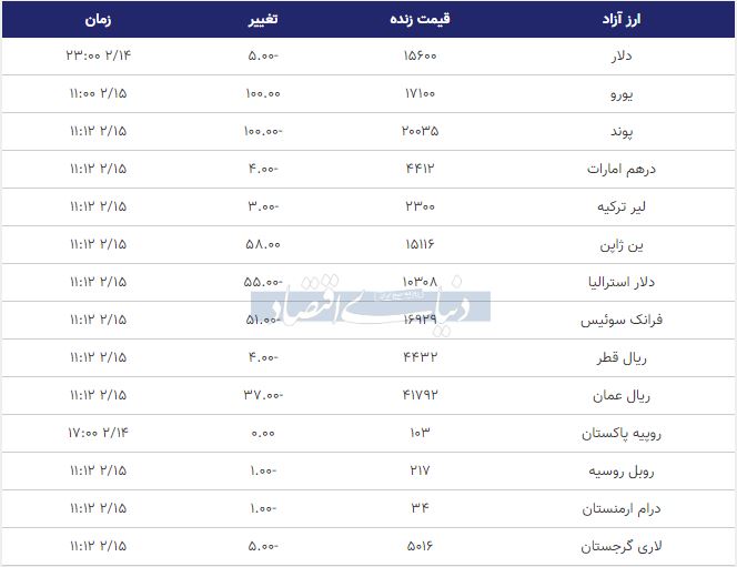 قیمت انواع ارز در بازار امروز گروه اقتصادی الف، ۱۵ اردیبهشت ۱۳۹۹، ۱۲:۱۵ 3990215077 دنیای اقتصاد نوشت: قیمت یورو امروز در صرافی ها بالا رفت اما پوند افت نسبی قیمت را تجربه کرد.