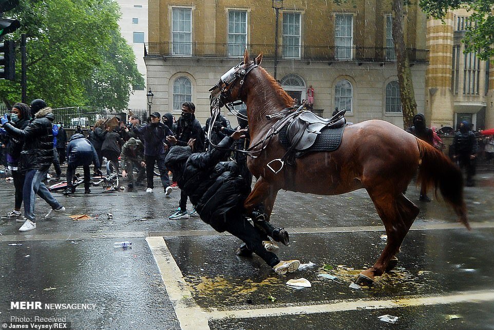 حمله وحشیانه پلیس اسبسوار لندن به تجمع مردم