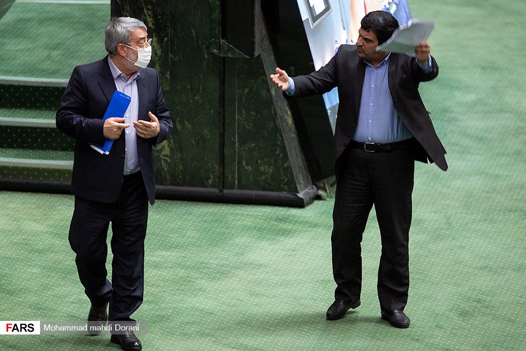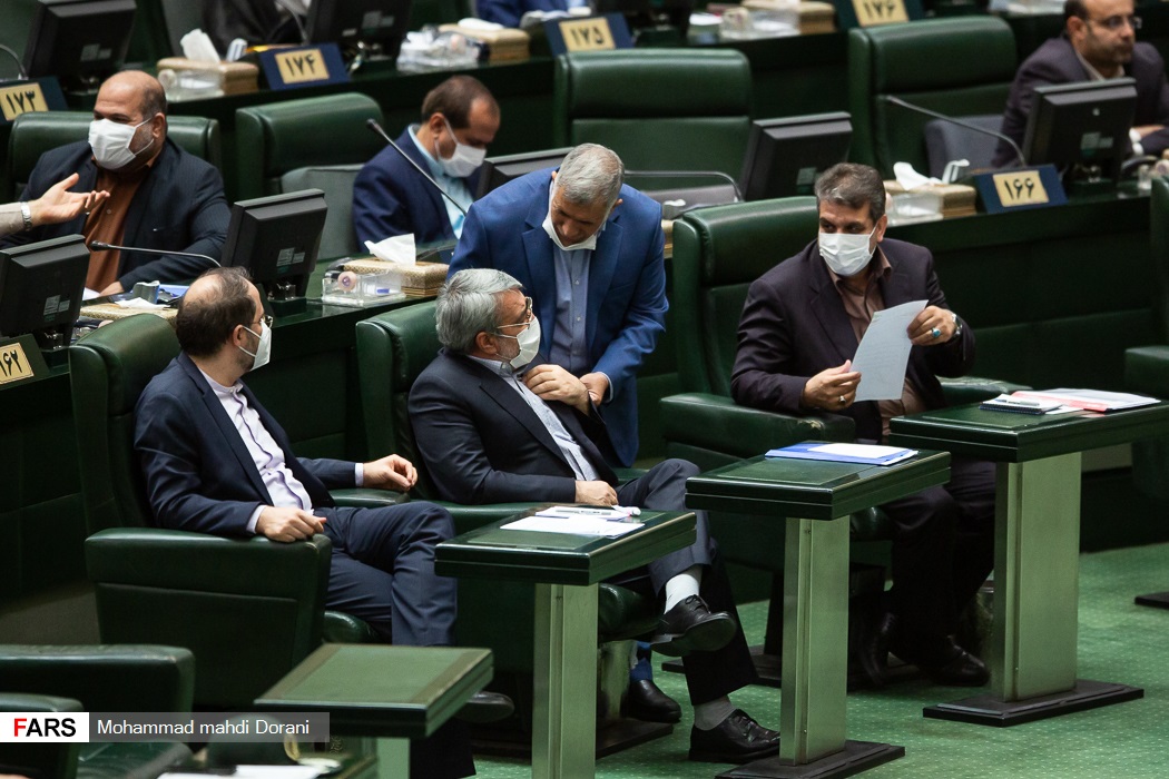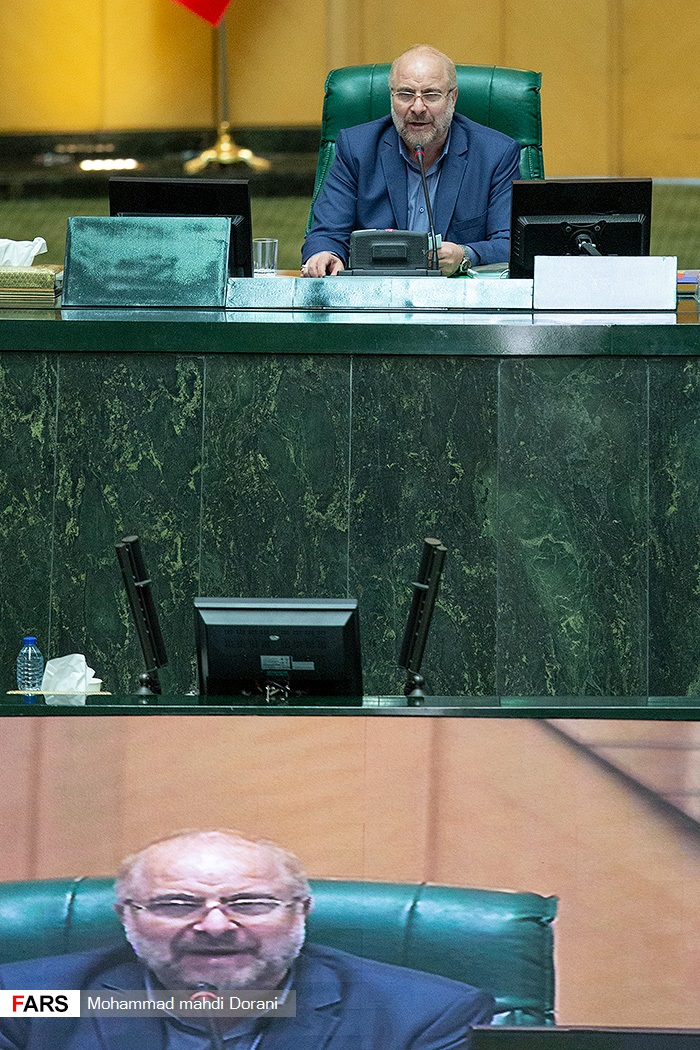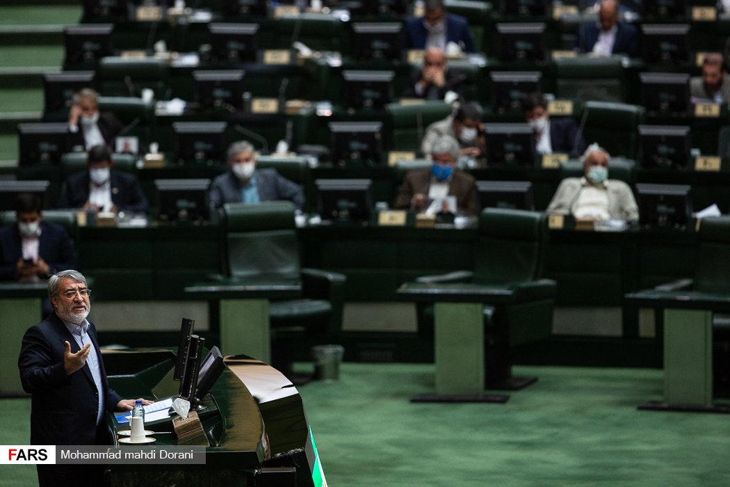 گروه عکس الف، 3990403138جلسه علنی مجلس شورای اسلامی، صبح سهشنبه ۳ تیر ۱۳۹۹ به ریاست محمدباقر قالیباف برگزار شد. در این جلسه عبدالرضا رحمانی فضلی وزیر کشور گزارشی از اقدامات این وزارتخانه را به نمایندگان ارائه کرد. پیش از جلسه علنی مجلس امیر حاتمی وزیر دفاع و پشتیبانی نیروهای مسلح در جلسه غیرعلنی گزارشی از وضعیت دفاعی و امنیتی کشور را ارائه کرد.