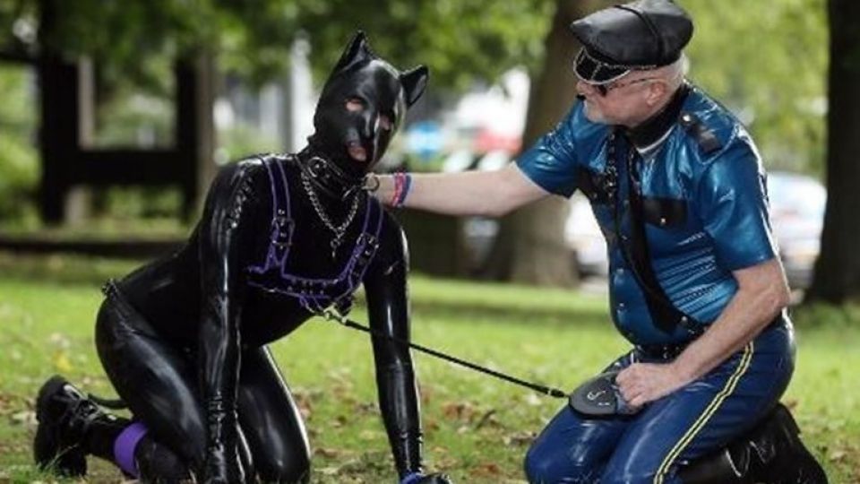 شریک این "انسانهای سگنما" مردی همجنسگرا است که با بستن قلاده بر گردن آن, او را در خیابانها همراه خود حرکت میدهد.