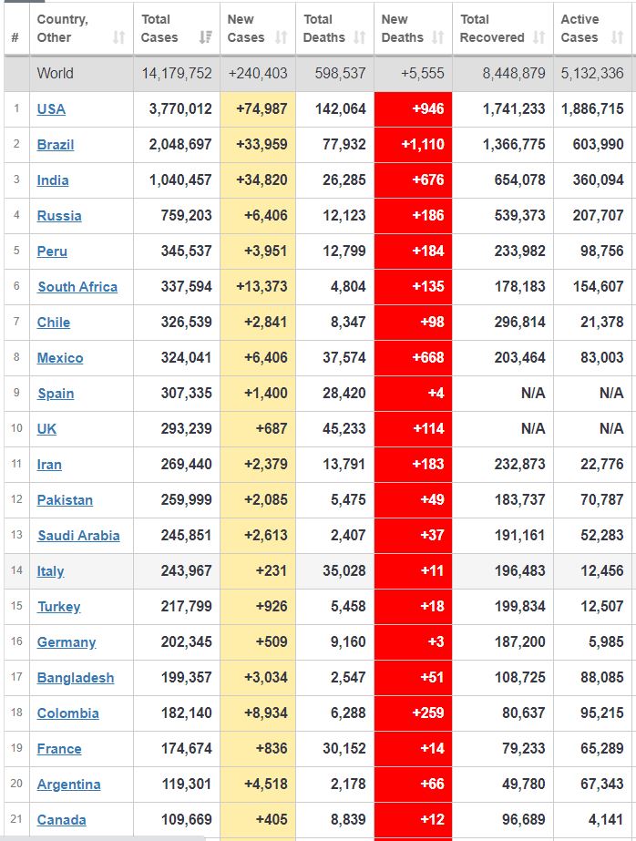 آمار بهروز جهانی درباره کرونا/ بیش از ۱۴ میلیون نفر مبتلا در جهان