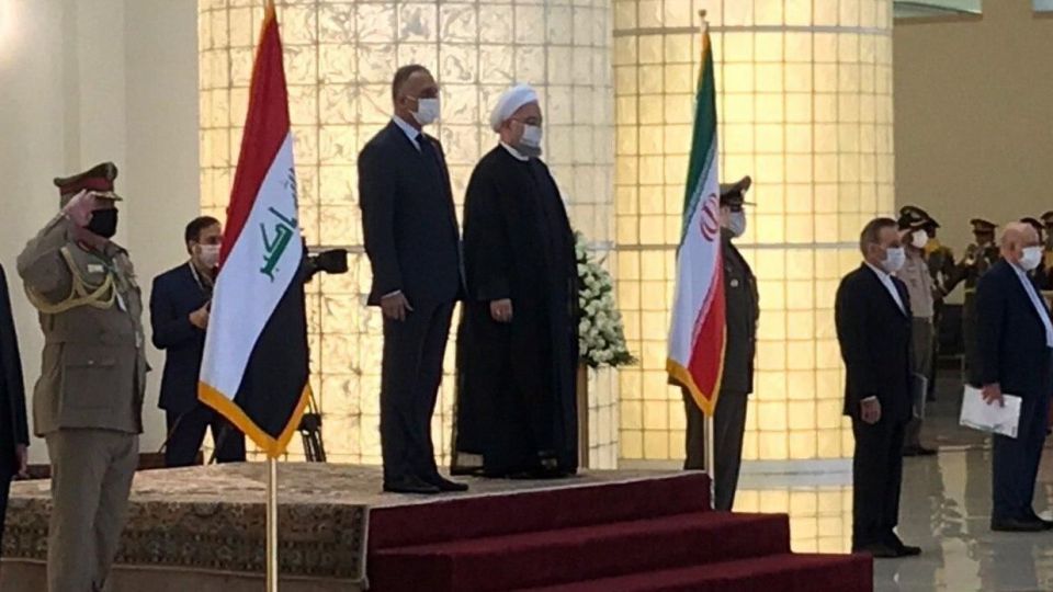 به گزارش ایرنا، مراسم استقبال از نخست وزیر عراق بعد از ظهر روز سهشنبه (۳۱ تیرماه ۹۹)در سالن اجلاس سران کشورهای اسلامی در تهران برگزار شد، در این مراسم پس از نواخته شدن سرود ملی دو کشور، رییس جمهوری اسلامی ایران و نخست وزیر عراق از یگان تشریفات سان دیده و سپس هیاتهای عالیرتبه همراه را به یکدیگر معرفی کردند.