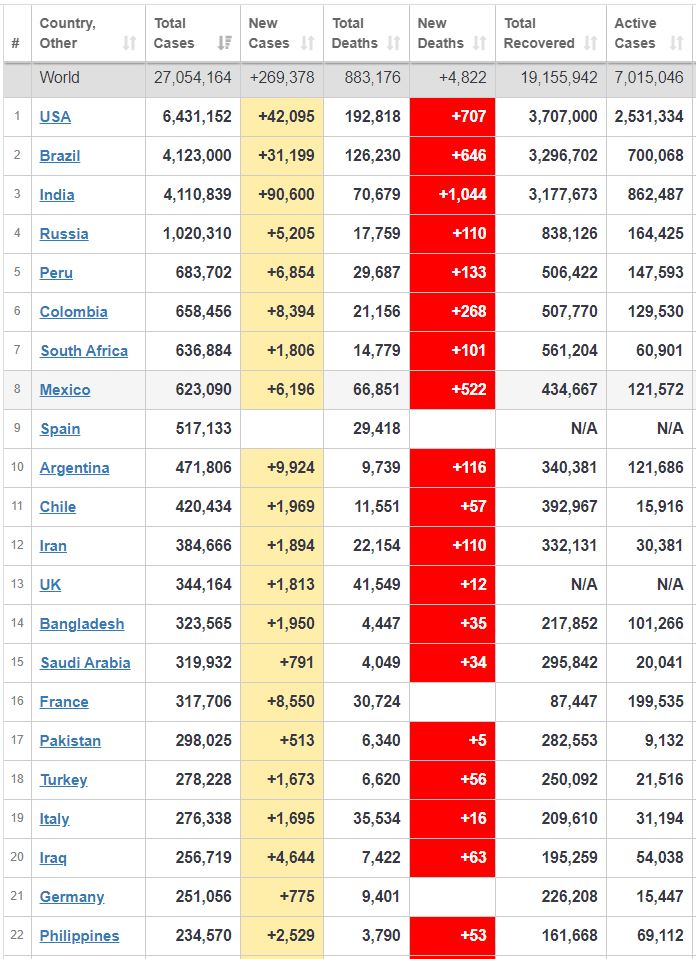 گروه سلامت الف، 3990616036این روزها ویروس کرونا در اغلب کشورهای جهان در حال گسترش است و تکاپویی جهانی برای کنترل آن شکل گرفته است. شما می توانید هر روز در جدول زیر روند ابتلا به این بیماری و بهبود آن را در کشورهای مختلف ببینید. جدول زیر آمار منتشر شده تا روز ۱۶ شهریور است.