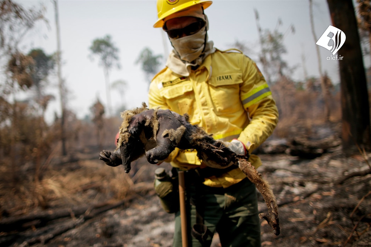 حیوانات سوخته در آتش جنگلها گروه ویدئو الف، ۲۵ شهریور ۱۳۹۹، ۱۲:۱۸ 3990625080 آتش سوزی جنگل آمازون حیات وحش را به نابودی کشانده است.