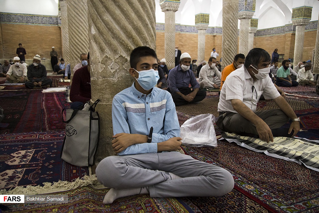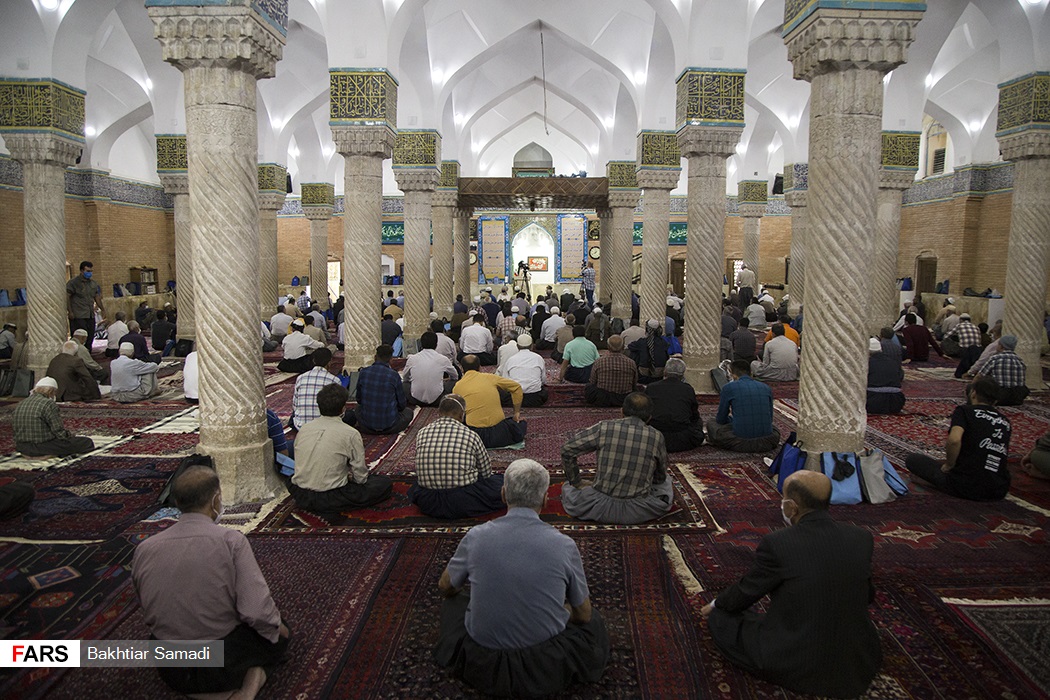 گروه عکس الف، 3990628071نماز جمعه در برخی شهرستانها با رعایت دقیق پروتکلهای بهداشتی اعم از فاصلهگذاری اجتماعی، استفاده از ماسک و مواد ضدعفونی کننده برگزار میشود. هم اکنون برگزاری نمازهای جمعه در کشور دارای روال مشخصی است که این روال طبق همان قاعده ای است که ستاد ملی مبارزه با کرونا تعیین کرده است.