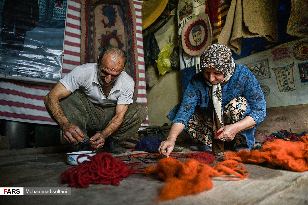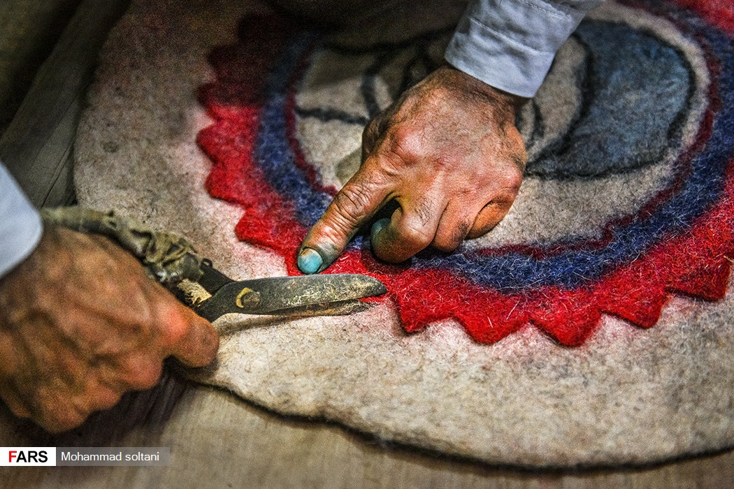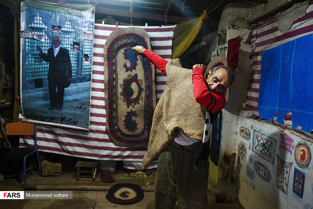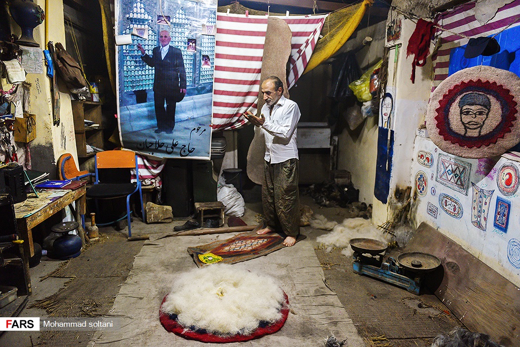 با نگاهی گذرا به دیوار کارگاه نمدمالی حلاجیان طرحهایی به چشم میخورد که محمود از ذهن خود پیاده کرده است و با یاری همسرش، هر طرح نقشی میشود در تارو پود نمدی که در زیر دست هایشان جان میگیرد و به سلیقه مشتری خوش میآید.