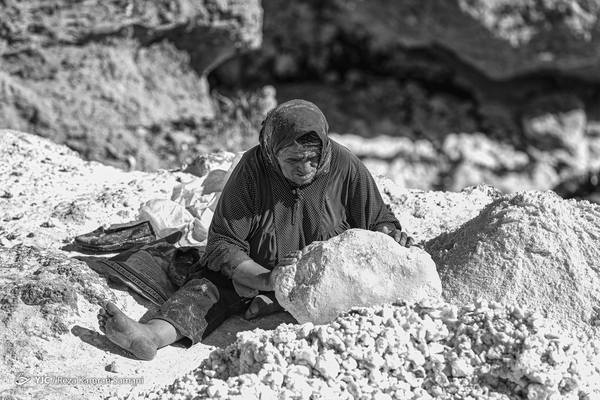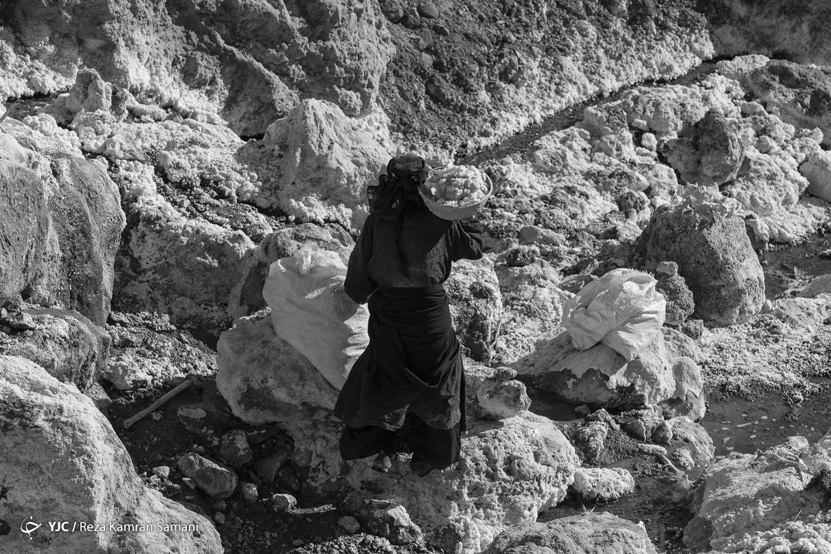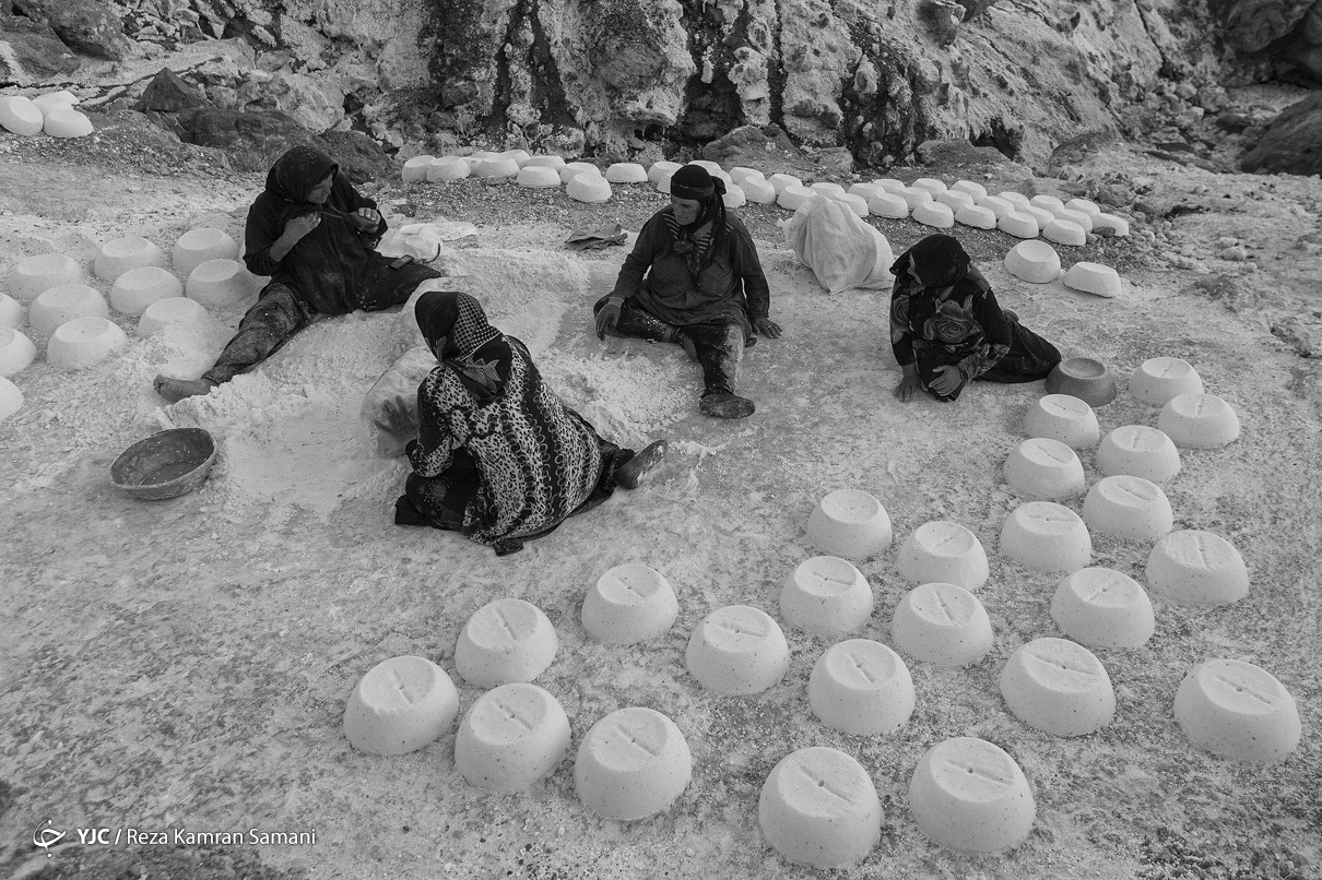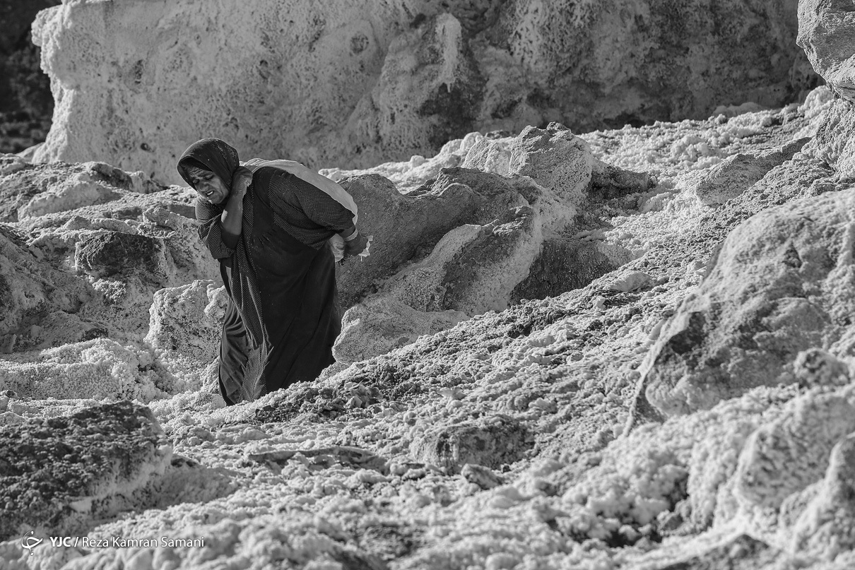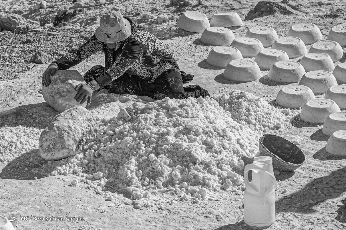 زنان با تیشه به بالای کوه نمکی میروند تا تکههای نمک را جدا کنند؛ تکههای جدا شده به پایین آورده تا با سنگهای بزرگ نرم و آسیاب شود. بعد در کاسههایی که قالب محسوب میشود ریخته و در آفتاب قرار میدهند تا سفت و خشک بشنود. نمکهای قالب گیری شده به قیمتی ارزان فروخته میشود. اما دردهای این مرارت تا سالها دامن گیر زنان نمکی است.