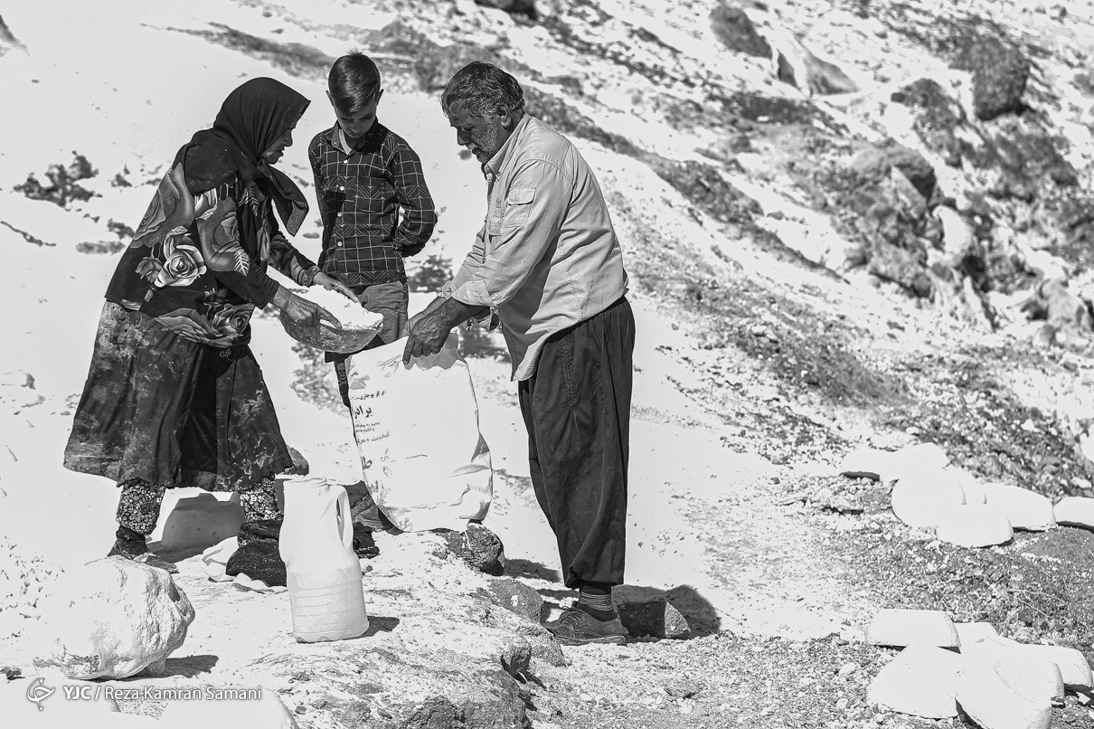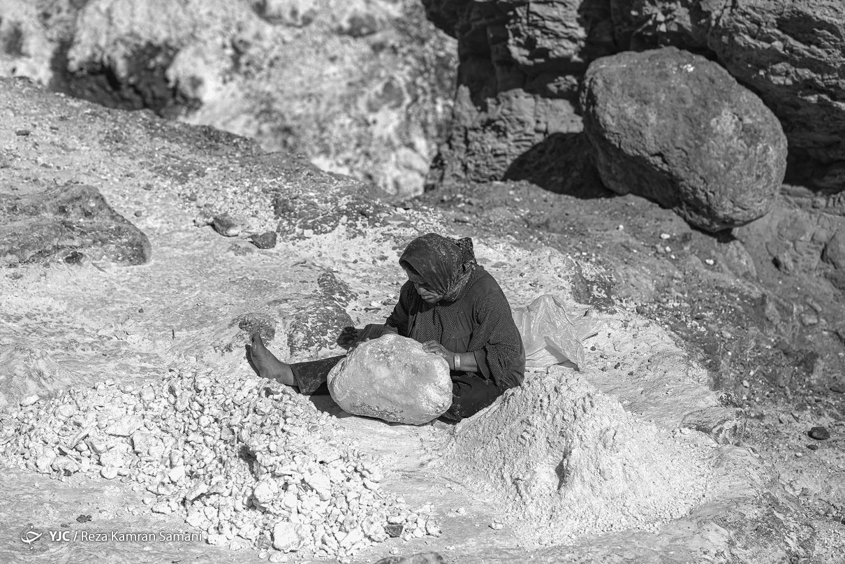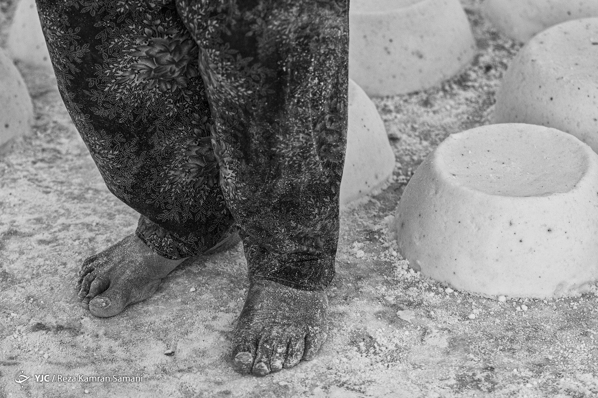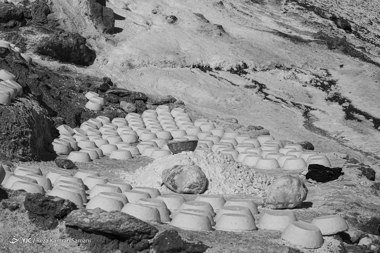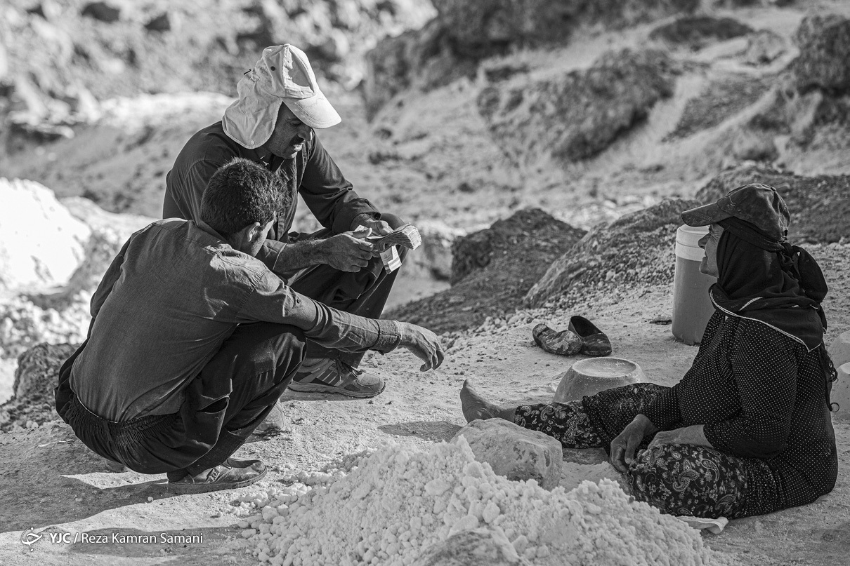 زنان با تیشه به بالای کوه نمکی میروند تا تکههای نمک را جدا کنند؛ تکههای جدا شده به پایین آورده تا با سنگهای بزرگ نرم و آسیاب شود. بعد در کاسههایی که قالب محسوب میشود ریخته و در آفتاب قرار میدهند تا سفت و خشک بشنود. نمکهای قالب گیری شده به قیمتی ارزان فروخته میشود. اما دردهای این مرارت تا سالها دامن گیر زنان نمکی است.