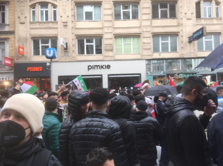 تظاهرات هزاران نفری مردم در یکی از خیابانهای اصلی وین در حمایت از مردم فلسطین
