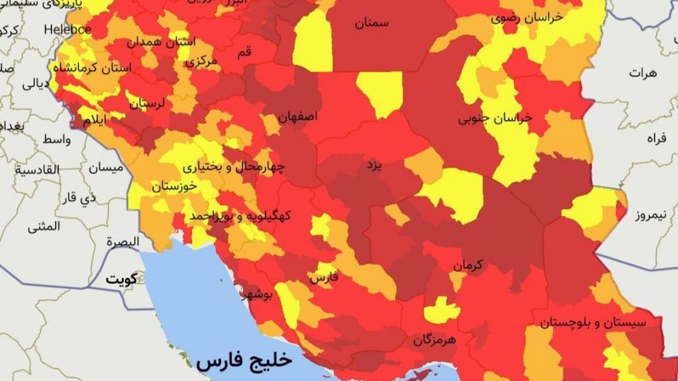 به گزارش مهر، تا روز گذشته ۱۶۹ شهر کشور در وضعیت قرمز، ۱۶۶ شهر در وضعیت نارنجی و ۱۱۳ شهر نیز در وضعیت زرد قرار داشتند که تعداد این شهرها به ۲۳۲ شهرستان قرمز، ۱۱۷ شهرستان نارنجی و ۹۹ شهرستان زرد کرونایی تغییر کرد و تغییرات جدید رنگ بندی شهرهای کرونایی از روز پنچ شنبه ۳۱ تیر ماه ۱۴۰۰ اعمال میشود.