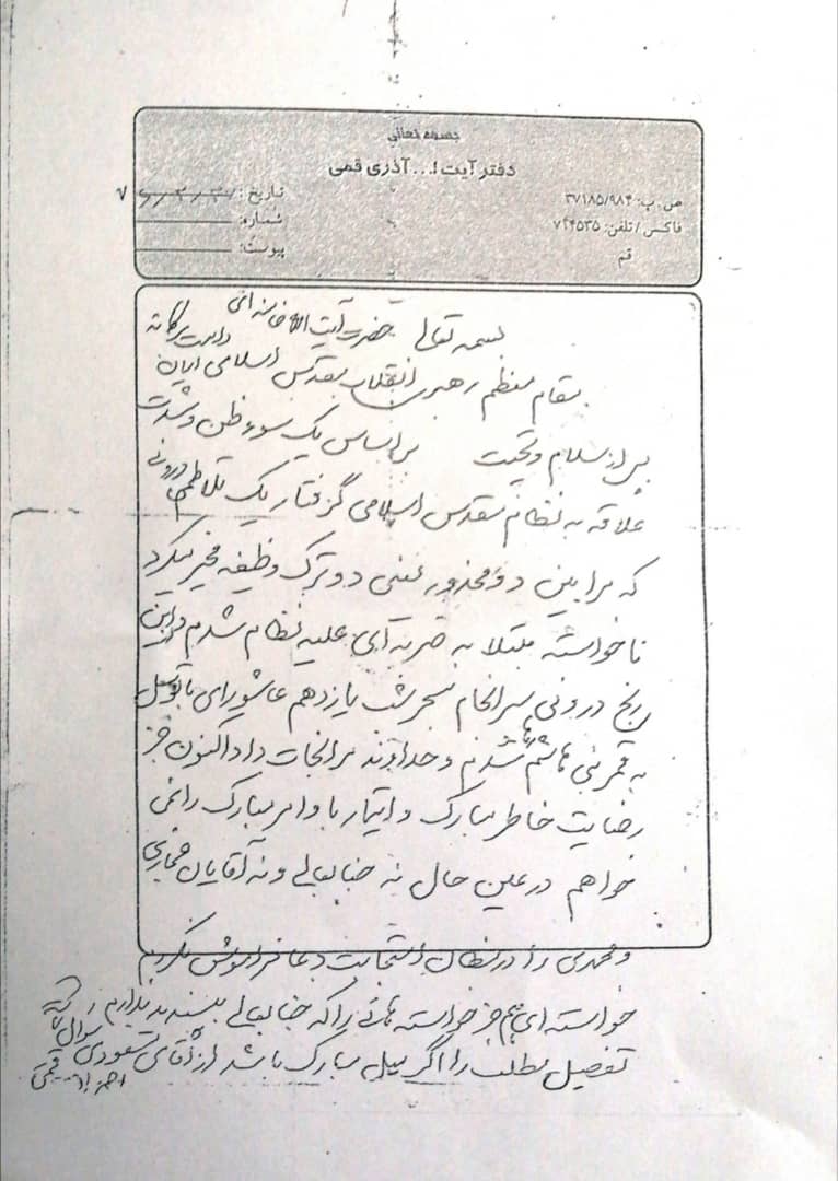 متن نامهی آقای آذری قمی خدمت رهبر انقلاب به شرح زیر است: