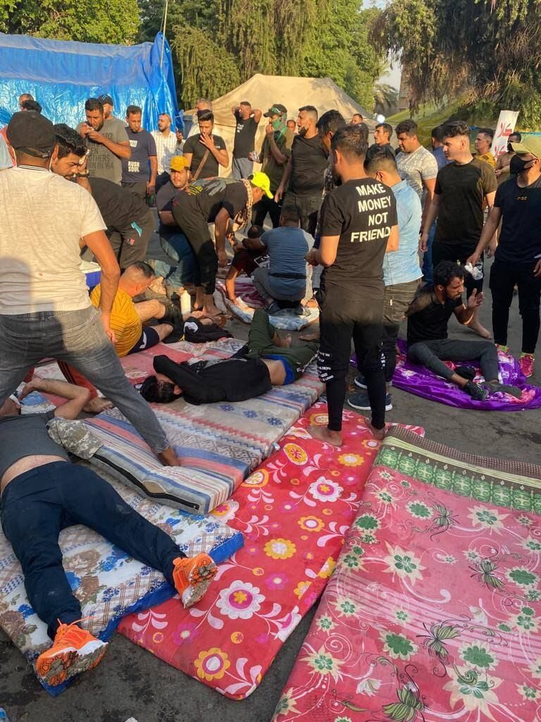از طرفی شیخ الخزعلی در واکنش به کشتار معترضان، اعلام کرد که امروز (شنبه) در محل شهادت این افراد در برابر منطقه امنیتی سبز، مجلس ویژه ترحیم برپا می کند؛ این در حالی است که گفته می شود چهار تن از مجموع پنج کشته شده، از گروه مقاومت عصائب اهل الحق هستند.