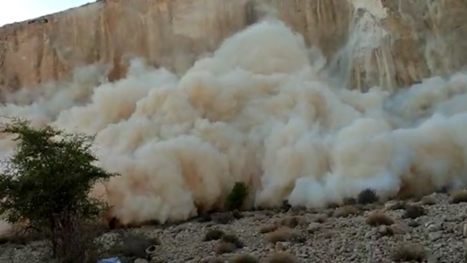 یک چوپان که برای چرای دام ها به اطراف کوه گنو رفته بود، حین زلزله از ریزش کوه گنو بندرعباس فیلم گرفته است.