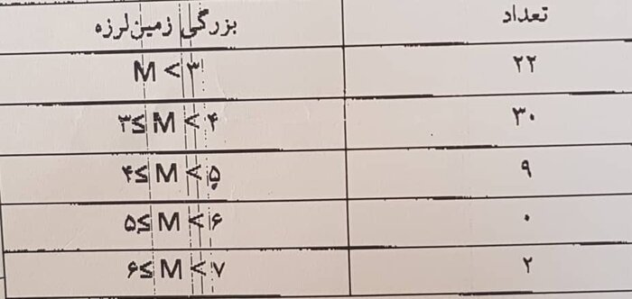 طبق آخرین اطلاعات مرکز لرزهنگاری موسسه ژئوفیزیک دانشگاه تهران، از این ۶۱ پسلرزه، ۹ پسلرزه با بزرگای بین ۴ تا ۵، ۳۰ پسلرزه با بزرگای بین ۳ تا ۴ و ۲۲ پسلرزه با بزرگای کمتر از ۳ در مقیاس امواج درونی زمین در استان هرمزگان رخ داده است.