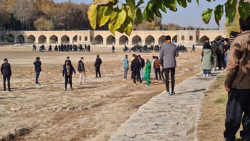 جمعیت مستقر در بستر زاینده رود که ابتدا در حوالی پل خواجو بود پس از اقدام پلیس برای متفرق کردن، بتدریج و طی چند مرحله به سمت پل فردوسی و سپس سی و سه پل حرکت کرد.