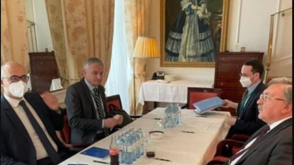به گزارش ایسنا، میخائیل اولیانوف، نماینده روسیه در سازمانهای بینالمللی واقع در وین روز پنجشنبه در توییتی نوشت: امروز با همتایان انگلیسی، آلمانی و فرانسوی دیدار کردم تا نتایج حاصله در بخش ابتدایی در دور هشتم مذاکرات وین بر سر برجام بررسی کنیم. این مرتبه توانستیم باکمک یکی از کارمندان هتل عکسی بیاندازم.