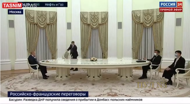 برخی دیگر از کاربران بر اساس اعلام رسانه های خارجی ولادیمیر پوتین، رئیس جمهوری روسیه با «نقض» پروتکل رسمی، ضمن اشاره دست به میهمان برای پیوستن به او، سالن کنفرانس خبری مشترک با امانوئل مکرون، رئیس جمهوری فرانسه در مسکو را زودتر از همتای فرانسوی خود ترک کرد. و مکرون مجبور شد با فاصله ای بسیار از پوتین حرکت کند