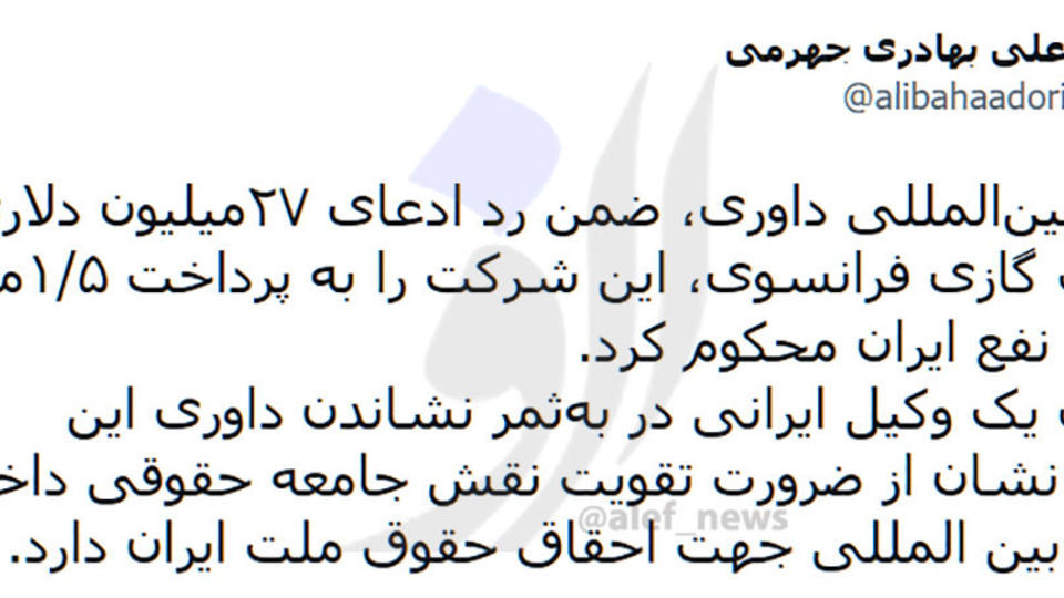 «دیوان بینالمللی داوری، ضمن رد ادعای ۲۷ میلیون دلاری شرکت گازی فرانسوی، این شرکت را به پرداخت ۱/۵میلیون دلار به نفع ایران محکوم کرد.