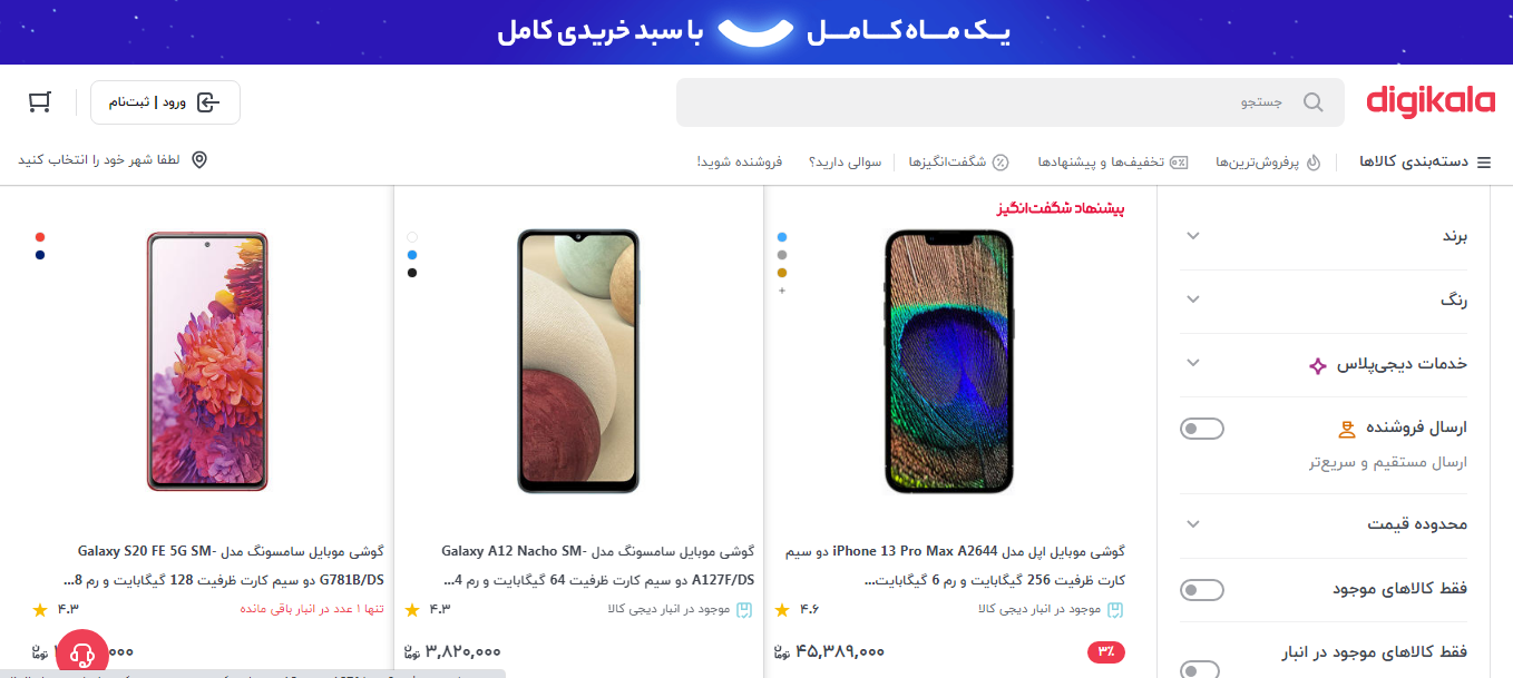 صفحه جدید را کمی به سمت پایین، اسکرول کرده و روی گزینه دیجی کالا کلیک کنید