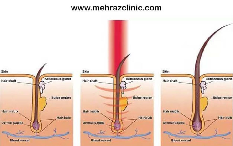 فولیکول مو باید در یک زمان مشخص در طول چرخه رشد خود مورد هدف قرار گیرد تا از برگشت مو جلوگیری شود. از آنجایی که موها می توانند در هر زمان در قسمت های مختلف چرخه رشد مو قرار داشته باشند، برای مشاهده نتایج طولانی مدت به چندین جلسه درمانی نیاز خواهید داشت. ما معمولاً 6-8 لیزر با فاصله 4-6 هفته را توصیه می کنیم.