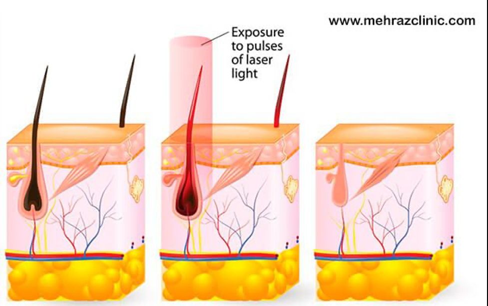 اشعه بخاطر انرژی نامحسوسی که بسیار بالا می باشد در لایه زیرین پوست نفوذ کرده و از ریشه شروع به سوزاندن فولیکول مو می کند. در این حالت فرد بدون اینکه گرما و دردی را احساس کند متوجه از بین رفتن موهای زائد بدن خود می شود و بصورت زنده از بین رفتن موهای ناخواسته خود را می بینید. مدت زمان لازم جلسه اول لیزر کل بدن ۴۵ دقیقه می باشد.