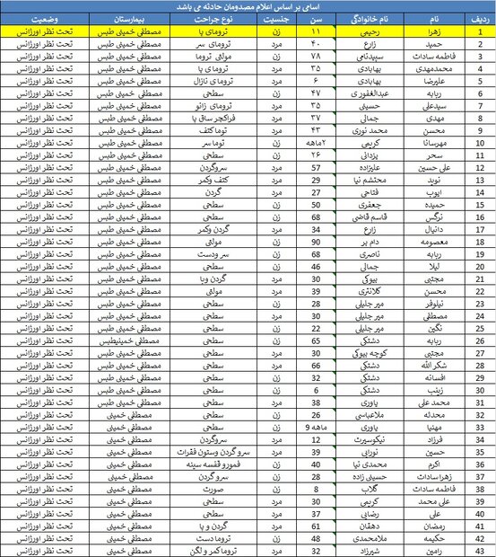 10:35/ اسامی مصدومانی که تا این لحظه به بیمارستان طبس منتقل شدهاند.