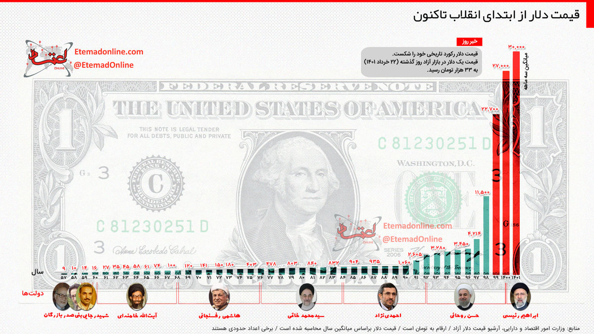 اینفوگرافیک| قیمت دلار از ابتدای انقلاب تاکنون