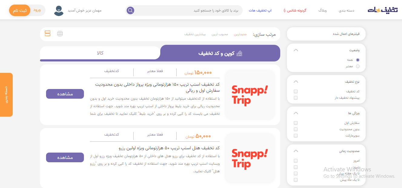 تخفیف هات یک وب سایت ارائه دهنده انلاین کد تخفیف های متنوع از وب سایت ها و آنلاین شاپ ها می باشد. کافیه یه سری به این سایت بزنید و در نوار سرچ آن کد تخفیف فروشگاه انتخابی تان را بنویسید تا یک کد تخفیف رایگان و تست شده نصیب تان شود.