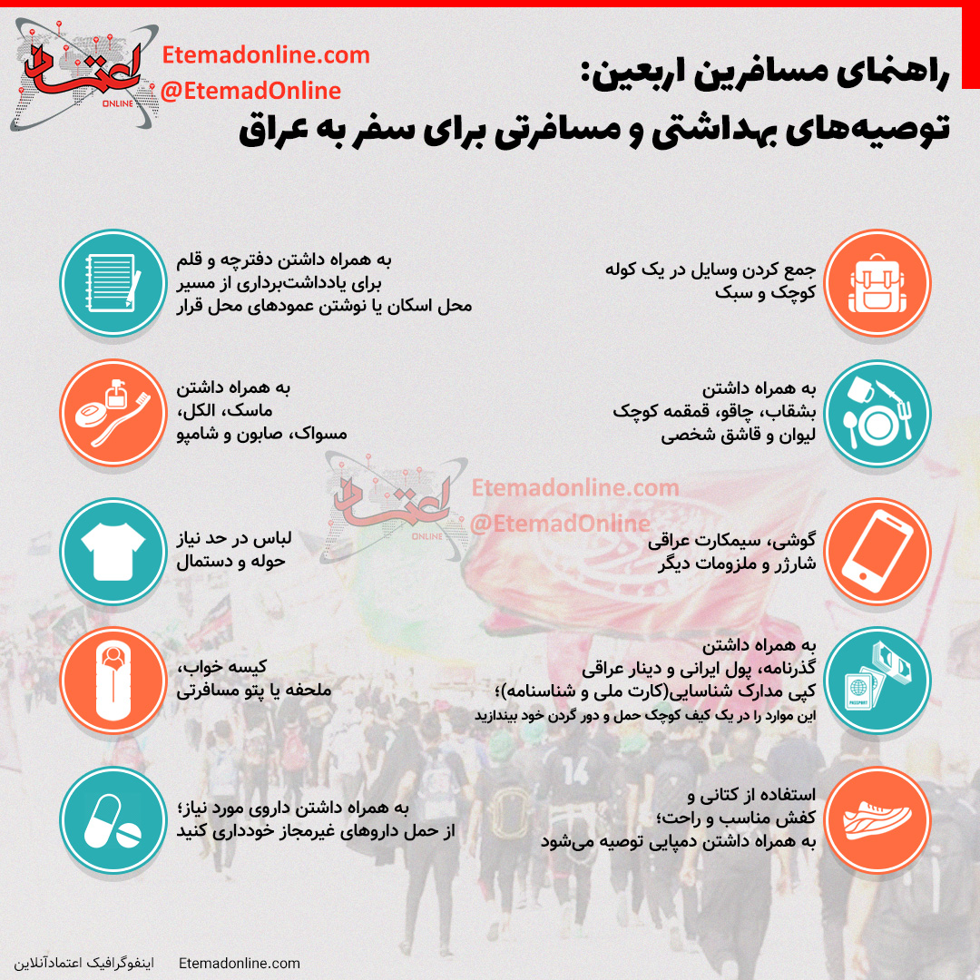 اینفوگرافی| توصیههای بهداشتی و مسافرتی برای سفر اربعین