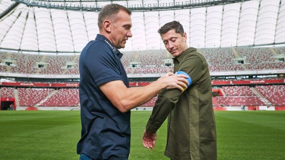 شفچنکو بازوبند تیم ملی فوتبال اوکراین را به روبرت لواندوفسکی داد.