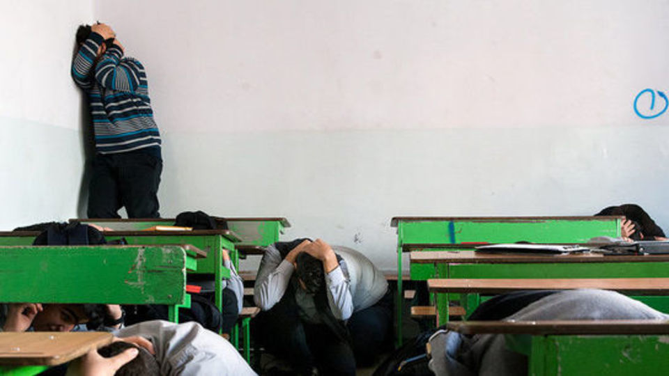 به گزارش ایسنا، در این مانور که به طور نمادین با حضور جمعی از مسئولان وزارت آموزش و پرورش، سازمان مدیریت بحران و جمعیت هلال احمر در دبیرستان شهید کدخدایی شهر تهران برگزار شد، دانش آموزان در حال اجرای نکات و قواعد ایمنی هنگام وقوع زلزله هستند.