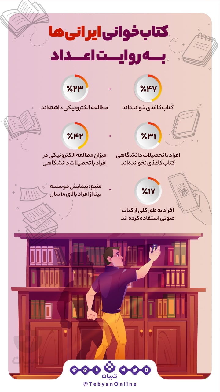 کتابخوانی ایرانیها به روایت اعداد ۱۲ آذر ۱۴۰۱، ۰۷:۱۵ 4010909065 کتابخونی تو ایران همیشه محل بحث و جدل بوده تو این بخش به نگاهی به وضعیت مطالعه ایرانیها انداختیم.