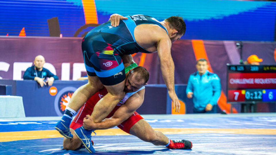 در وزن ۹۷ کیلوگرم ، مجتبی گلیج دارنده مدال برنز جهان ۲۰۲۱ مقابل سرگئی کوزیرف از روسیه ۴ بر ۳ شکست خورد و در وزن ۱۲۵ کیلوگرم، امیرحسین زارع دارنده مدال های طلای جهان و برنز المپیک با نتیجه ۱۰ بر ۴ مقابل لخاگواگرل مونختور از مغولستان به برتری رسید.