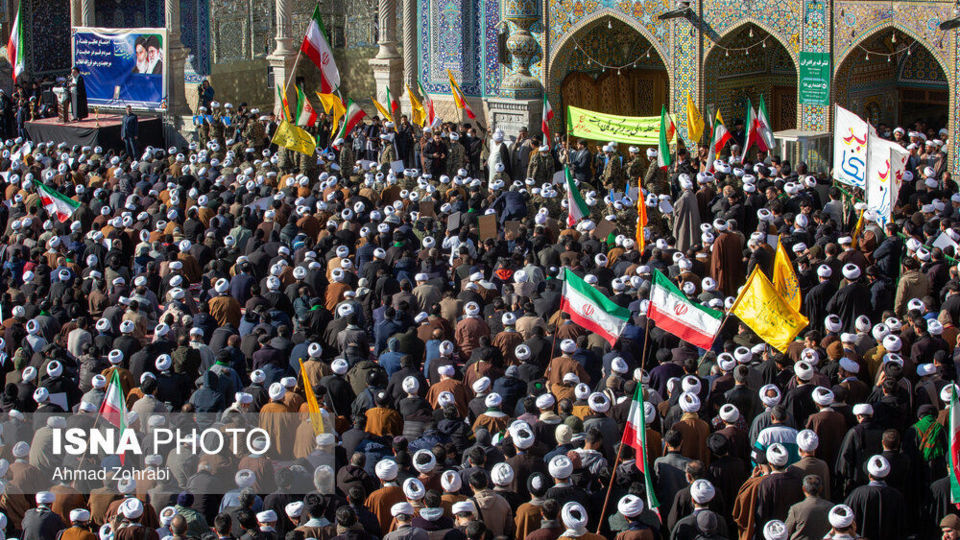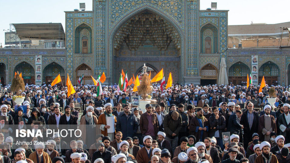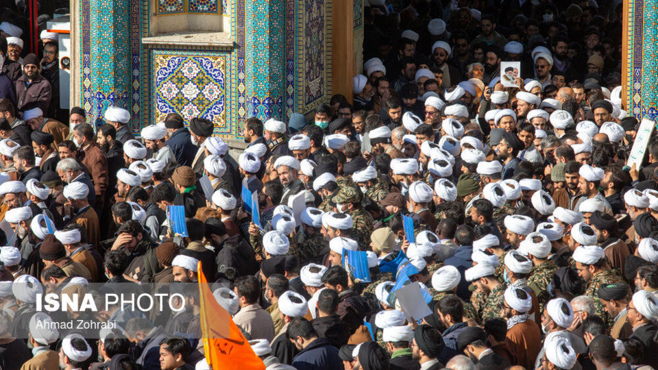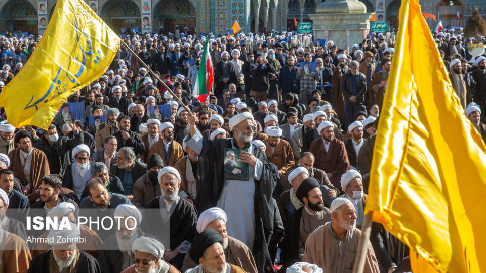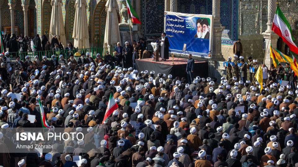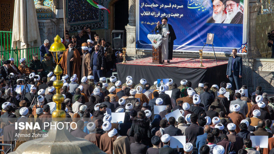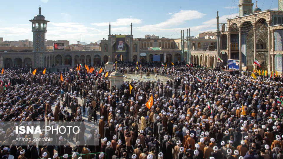 ظهر امروز یکشنبه ۱۸ دی ماه، علما، روحانیون و مردم قم در اعتراض به هتاکی مجله فرانسوی و توهین به مرجعیت و مقام معظم رهبری در صحن امام رضا(ع)، حرم حضرت فاطمه معصومه(س) تجمع و با سر دادن شعار این اقدام هتاکانه را محکوم کردند. همچنین آیت الله سید احمد خاتمی در این تجمع به ایراد سخن پرداختند.