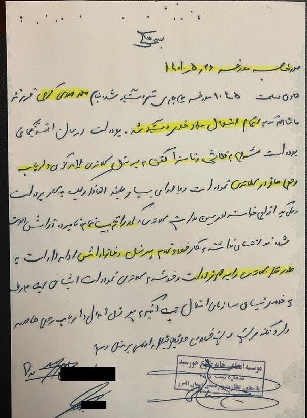 در گزارش کلانتری نظرآباد به مؤسسه ترک اعتیاد مورد اشاره هچنین مشخصاً عنوان میشود: محمدمهدی کرمی با شکایت خانواده بازداشت و به کلانتری دلالت داده شده است.