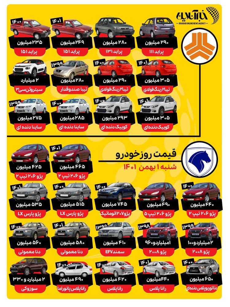 قیمت روز خودرو در جدول زیر آمدهاست: