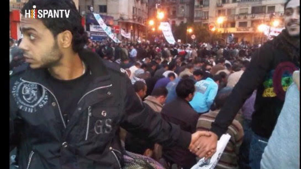 این عکس بیانگر وحدت فرقه ها در مصر است و زنجیره انسانی از انقلابیون مسیحی را نشان می دهد که برای محافظت از مسلمانان هنگام نماز جمعه تشکیل داده اند.