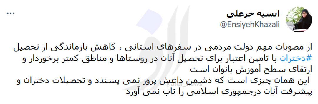 4011211034 ۱۶ نظر، ۰ در صف انتشار و ۸ تکراری یا غیرقابل انتشارانسیه خزعلی در حساب توییتر خود در واکنش به مسمومیت سریالی دانش آموزان در مدارس چندین استان کشور، نوشت: از مصوبات مهم دولت مردمی در سفرهای استانی، کاهش بازماندگی از تحصیل دختران با تامین اعتبار برای تحصیل آنان در روستاها و مناطق کمتر برخوردار و ارتقای سطح آموزش بانوان است. این همان چیزی است که دشمن داعش پرور نمی پسندد و تحصیلات دختران و پیشرفت آنان در جمهوری اسلامی را تاب نمی آورد.