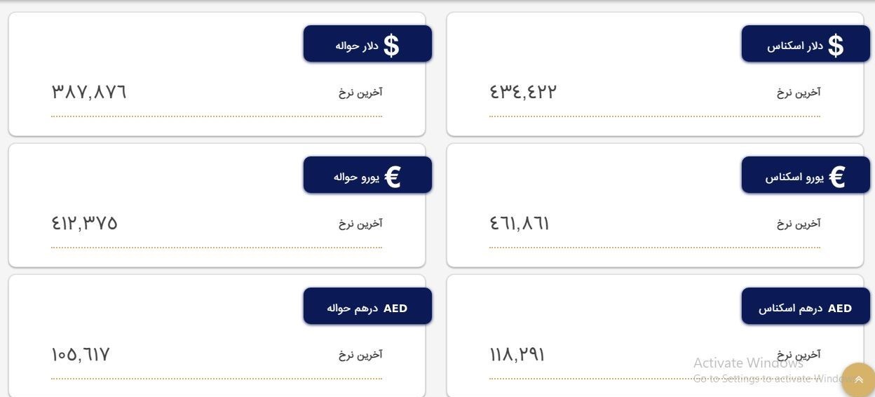 همچنین در مرکز مبادله ارز و طلا نرخ اسکناس درهم 11 هزار و 829 تومان و نرخ حواله درهم نیز 10 هزار و 561 تومان اعلام شده است. مرکز مبادله ارز و طلای ایران هفته گذشته با حضور رییسکل بانک مرکزی، مدیران بانک مرکزی و مدیران بانکهای عامل آغاز به کار کرد.