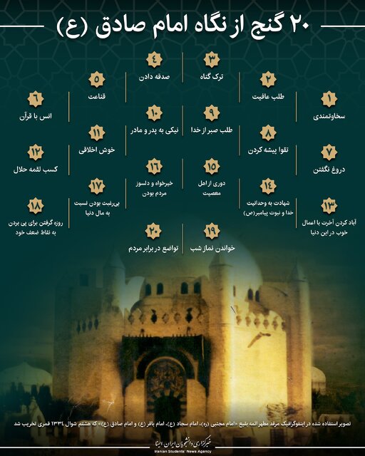 اینفوگرافیک / ۲۰ گنج از نگاه امام صادق (علیهالسلام)
