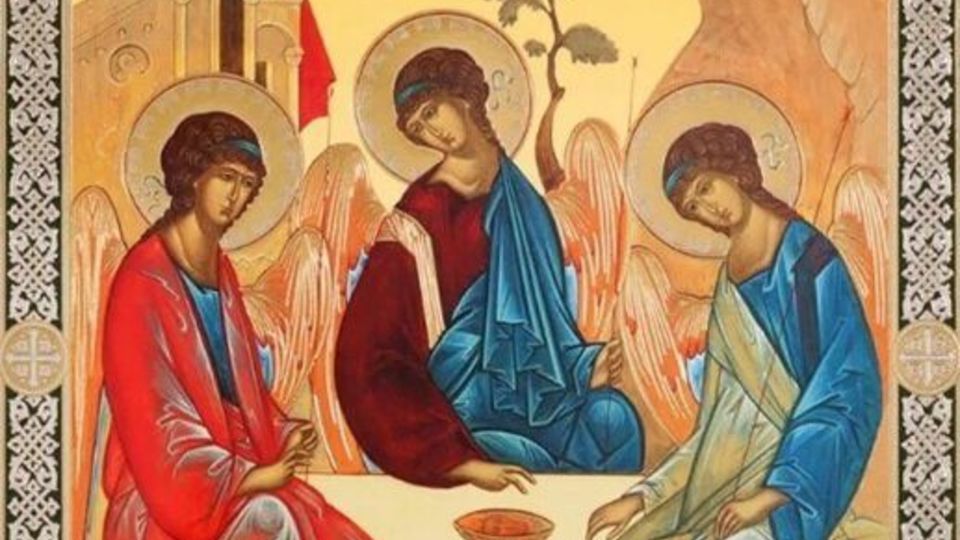 این اثر هنری سه فرشته را حین ملاقات با ابراهیم نبی به تصویر میکشد و یکی از تاثیرگذارترین نمایشهای بصری تثلیث است که پیش از آنکه توسط دولت شوروی از کلیسا ارتدکس روسیه خارج شود در آنجا نگهداری میشد.