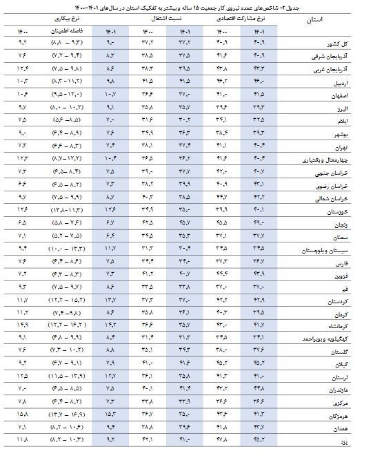 جدول نرخ بیکاری در 31 استان بهشرح زیر است: