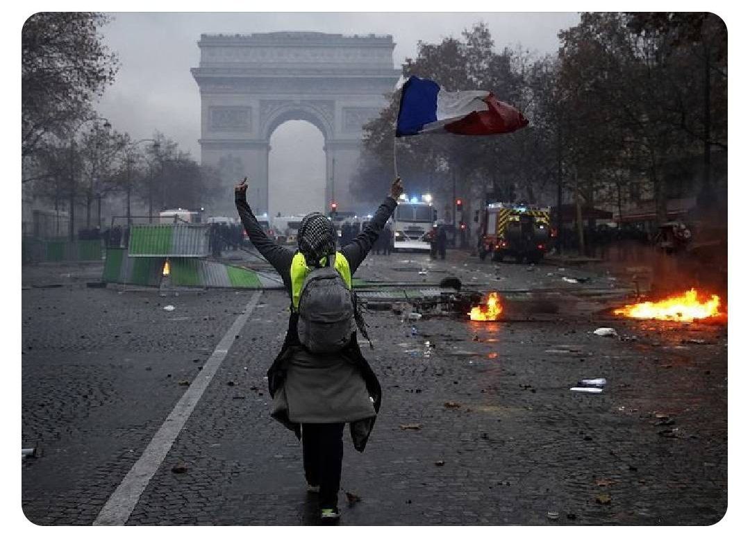 پرچم فرانسه رو برده بالا جلو پلیس! مثل بعضی بی غیرت ها پرچم ملی رو آتش نزده