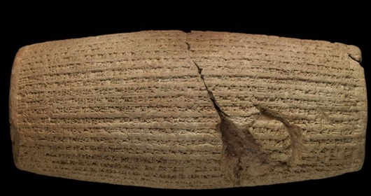 این استوانه معروف ترین نوشته ای است که در آن، فرمان صریح و مستقیم کوروش هخامنشی به خط «میخی» بیان شده و اکنون برای ما به یادگار مانده است و تصویر آن را در ادامه مشاهده خواهید نمود که به «استوانۀ کوروش» یا «منشور کوروش» معروف شده است.