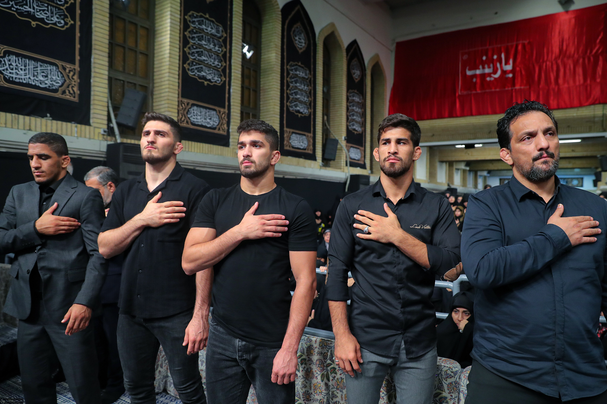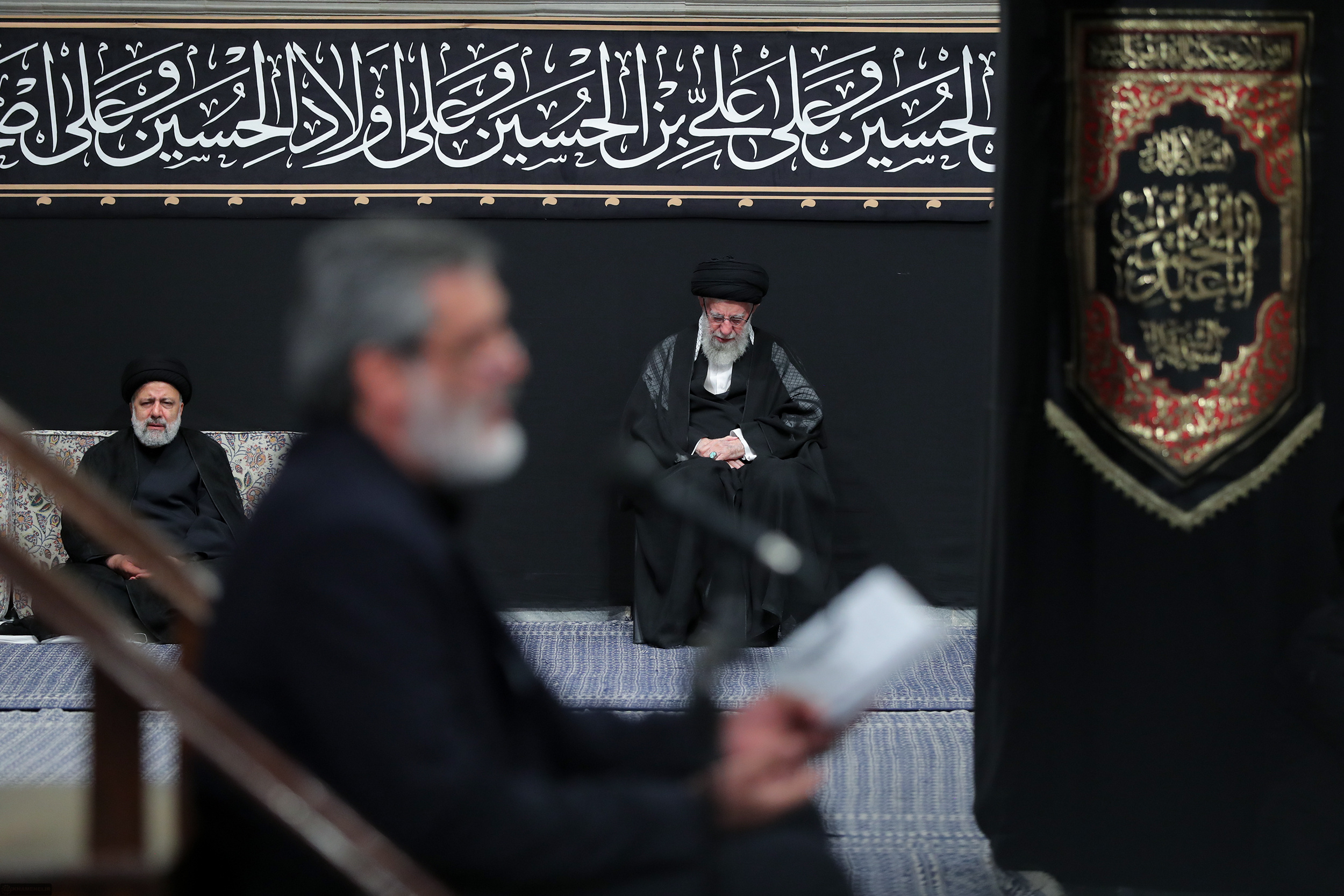 4020506005 ۴ نظر، ۰ در صف انتشار و ۲ تکراری یا غیرقابل انتشارمراسم عزادای شب عاشورای حسینی با حضور رهبر معظم انقلاب اسلامی و جمعی از عزاداران سید و سالار شهیدان علیهالسلام، امشب (پنجشنبه) در حسینیه امام خمینی(ره) برگزار شد. در این مراسم حجتالاسلام والمسلمین رفیعی به ایراد سخن پرداخت. همچنین مهدی سماواتی به ذکر مصیبت و قرائت دعای توسل پرداخت و مهدی رسولی نیز مرثیهسرایی و نوحهخوانی کرد.