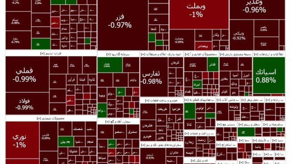 فملی، فولاد، فارس و وغدیر بیشترین تاثیر منفی را بر شاخص کل داشتند. همچنین فملی، فولاد، ذوب و وبملت از نمادهای پرتراکنش بوددن که همگی منفی شدند.
