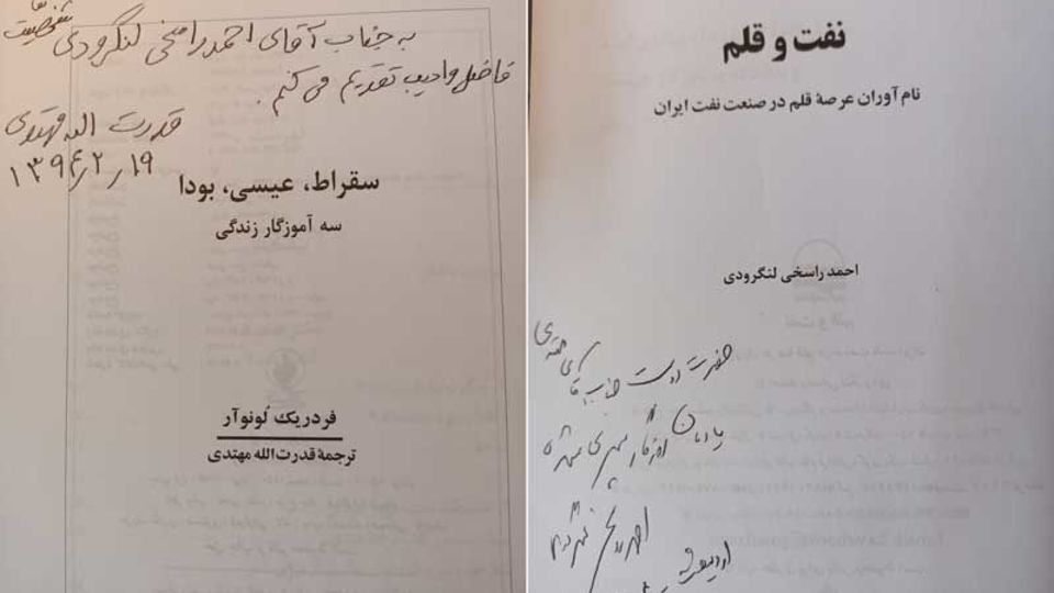 کتاب را در همان اولین دیدار پشتنویسی کرد و به من هدیه داد. من هم به رسم ادب یک نسخه از کتاب خودم را که تنها نسخهی در دسترسم بود تقدیمش کردم، یادمان روزگار سپری شده، که در سال 1391 به چاپ رسیده بود. درواقع باید بگویم یک معامله پایاپای؛ رسمی که بیشترِ اهل قلم در جمع خودشان دارند. آن کتاب همین کتاب «نفت و قلم» بود؛ ویژه نامآوران عرصه قلم در صنعت نفت، که امروز در بساطیهای جلوی دانشگاه نصیبم شد. به گمانم بدش نمیآمد به عنوان نویسنده و مترجم در زمره شاغلین صنعت نفت جایی از «نفت و قلم» را به او اختصاص دهم. این در حالی بود که مدتها پیش این کتاب چاپ شده بود، مگر اینکه جلد دومی برایش در برنامه میداشتم.